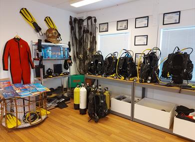 Her er det også både salg og utleie av utstyr, og du kan få trykktestet og fylt dykkerflasker.