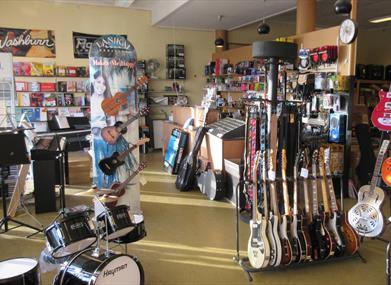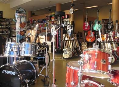 Musikkbutikken "Agder Musikk" ligger ved havna og har et godt utvalg av diverse musikkinstrumenter, forsterkere og noter. På gitarverkstedet kan de fikse strengeinstrumentet ditt. Her får du profesjonell og faglig rådgivning.