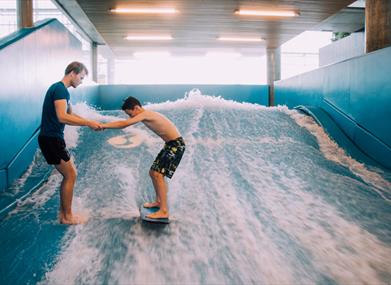 I alle skoleferier arrangeres det skattejakt to ganger om dagen i badet og alle barn kan være med. Prøv den utfordrende hinderløyen eller test ferdighetene på AquaSurf.