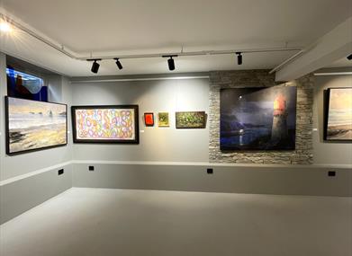 Art Gallery Linn er på 190 m² og fordelt på to etasjer. I første etasje viser vi varierte utstillinger som skiftes hver 6-8 uke. I underetasjen viser vi verk av nøye utvalgte «faste» kunstnere som får anledning til å representere galleriet i noen måneder.