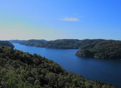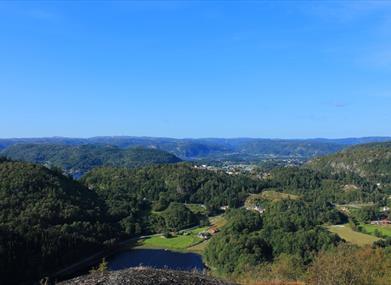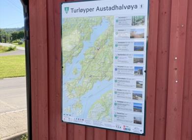 Mange flotte utsiktspunkter og fine turløyper i med god merking og skilting. Parkering og informasjonsplakater ved grendehuset i Austad.