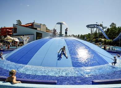 Det store og varme innendørsanlegget har sklier som sender deg rett ut i friluft. Du kan svømme i den 230 meter lange elven "Overfloden", men pass opp for flodbølgen. Sklier som "Haisann" og "Murre" holder de litt større barna (og helt sikkert far og mor også) i ånde med fart og spenning. For de mindre barna er det eget barneområde med barnebasseng, lekeapparater og sklier.