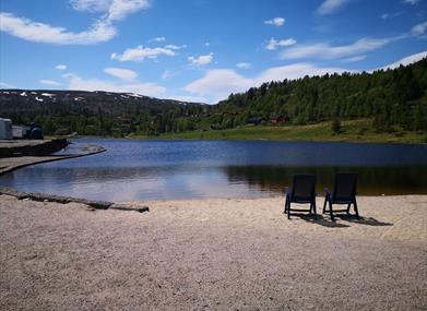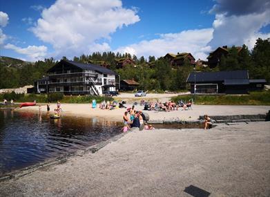 Ved Bortelidtjønna er det en fin strand som blir tatt i bruk med stor pågang av store og små. Her finner du i sommermånedene en vanntrampoline og vannleker som er gratis tilgjengelig.
