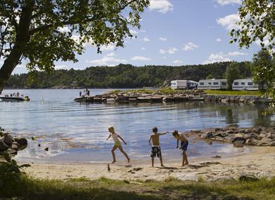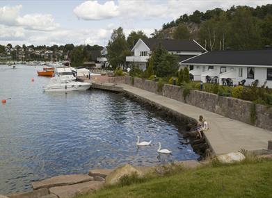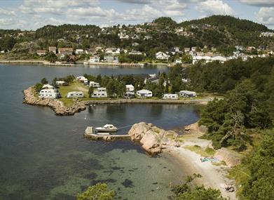 Plassen er omkranset av typisk sørlandsomgivelser med vakre friarealer og flotte badestrender.