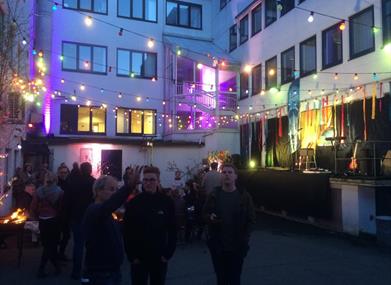 Bygården har i tillegg en spennende bakgård hvor det arrangeres konserter, standup, selskap og andre festligheter.
