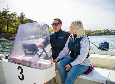 Når du leier en båt på Tregde ferie, får du både nødvendig informasjon og en instruksjon om hvordan