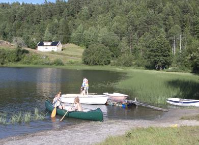 Kano/båt til disposisjon for gjestene. Eget sanitæranlegg med dusj/toalett. Bobiltømming.