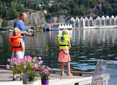Ferieleilighetene ligger direkte ved sjøen, 1,5 km fra Flekkefjord sentrum. Stedet byr på flotte bade- og fiskemuligheter, og man kan også leie båt. Leilighetene har dusj, toalett, kokemuligheter og kabel-TV. Døgn- og ukesopphold.