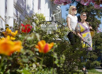 Langs strandpromenaden og i handlegaten Markens er det også plassert ut hundrevis av blomster i bed og gatelykter.
