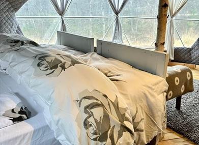 I våre eco-luksus natur pods/domer, sover du i nydelige senger med deilig sengetøy.