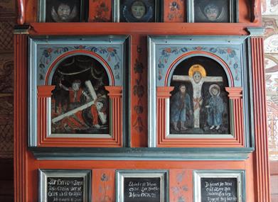 I koret heng det eit lite veggskåp som vart nytta til å ha altarbøker i. Skåpet er datert til tidleg på 1600-talet, med rosemåling frå første del av 1800-talet.