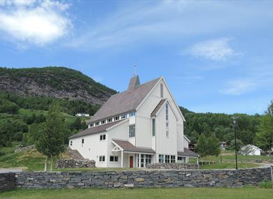 Den nye kyrkja er ei arbeidskyrkje i tre, med langkyrkjeplan og saltak. Ho er rektangulær, og har eitt skip. Korpartiet ligg integrert i sjølve kyrkjerommet. Den samla grunnflata i første etasje er på ca. 315 m2. Kring langsidene og inngangspartiet på kyrkja ligg låge fløyer med rom for ulike aktivitetar. Det romslege galleriet er på rundt 80 m2. Veggene er kvitmåla, og den tredelte himlingen har synlege, trekvite bjelkekonstruksjonar.