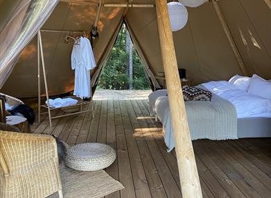 De tre lavvoene holder høy standard, og er utstyrt med dobbeltseng, sitteplass, peis og