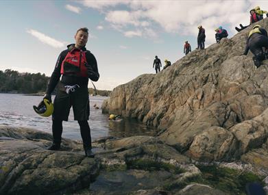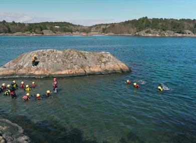 Ønsker du en utfordrende aktivitet som ikke krever noen tidligere erfaring eller noen spesielle ferdigheter, så er coasteering akkurat det du leter etter! Denne aktiviteten lar deg komme deg ut av komfortsonen, booster selvtilliten din og er en flott måte å bli enda bedre kjent med gruppen du deltar med, enten det er familie, venner, kollegaer eller en sportsklubb. Det er Trollpark Hove som arrangerer denne spennende utendørsaktiviteten ved deres lokaliteter på Tromøya, 15 minutter utenfor Arendal, så det er bare å ta turen hit for å delta på en berikende opplevelse!