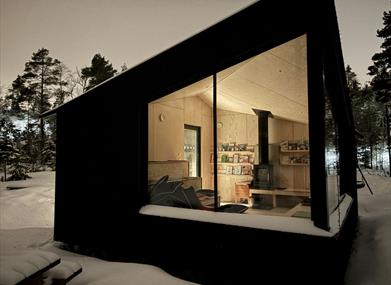 Her kan du nyte stillheten, spise nistepakka, bla i en bok fra turbiblioteket eller bare finne roen foran vedovnen.