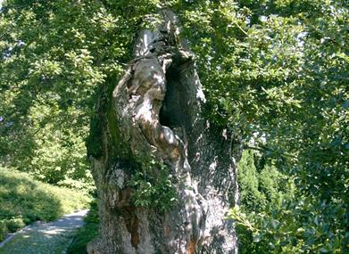 Tilbake nede i parken som omfatter en av landets største samlinger med trær, busker, roser og stauder, passerer du dammen og den store eika. Eika er ca. 500 år gammel med stammeomkrets på 7,15 m. Det finnes flere stier på kryss og tvers i skogen ved Dømmesmoen. Her er en lysløype som er merket, og du kan følge merket sti helt opp til Kollen. Lysløypa er laget som et 8-tall, hvor siste del av løypa varierer mye i høyde. Inni lysløypa ligger Rossholt-tjenna med brygge for rullestol, beregnet for fiske.