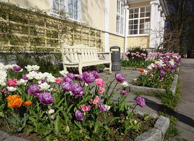 Videre på grusveien, i bakken, vil du se et klonfelt av valbjørk og flammebjørk. På venstre side, oppe på flaten, er det gjenskapt en samling av apotekerurter som var i bruk på den tid Henrik Ibsen var apotekerlærling i Grimstad, Ibsens Urtehage. Herfra kan du gå forbi Rhododendron-feltet og krysse veien for så å gå over i Den Vestlandske Hovedvei frem til Norsk Hagebruksmuseum. Ovenfor parkeringsplassen finner du Kjølbergsplass og herfra kan du gå ”Dømmesmoen ruslespor”, en skogsløype som tar deg opp til Utkikkstårnet. I toppen av tårnet får du en flott utsikt over byen og havet samt noe innland. Ved å fortsette på ruslesporet kommer du over Raet, endemorenen fra siste istid.