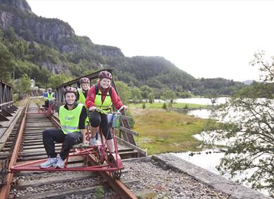 Opplev et uforglemmelig eventyr på den historiske Flekkefjordbanen – en del av Magma Geopark, som er en UNESCO Global Geopark. Her sykler du på egen dresinsykkel (skinnesykkel) gjennom vakker norsk natur, langs fjorder, gjennom daler, fjellpartier og hele 17 tunneler – en unik opplevelse for både turister og bedrifter.