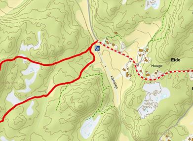 Kommer du med bil, kjører du RV 420 (tidligere E 18) vestover mot Homborsund og Lillesand. Kjør forbi Omresletta og avkjørsel til Homborsund. Ta neste avkjørsel til venstre inn Eideveien, det er skiltet Eide kirke, og følg denne 1,6 km til Eide kirke. Parkering ved kirka. Etter at nye E 18 ble bygd, er området bedre tilgjengelig med sykkel. Det er sykkelsti store deler av veien fra Grimstad, og partiene uten sykkelsti er stort sett oversiktlige i tillegg til at veien er langt mindre trafikkbelastet enn tidligere. Sykler kan parkeres ved jordet der stien starter. Det er også en mulighet å ha sykler på bilen og sykle fra Eide kirke til start på rundturen.