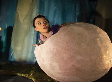 En tidlig morgen våkner skogen til liv, og en skogsalv finner et egg. Hun vokter egget og drømmer om hva som bor i det. Vi følger den forunderlige forvandlingen fra egg til nyklekket fugleunge, og fugleungens forvandling til en vakker, fullvoksen og flygedyktig fugl. "Egget" er en visuell poetisk forestilling uten ord, med skyggespill, musikk og bevegelse.