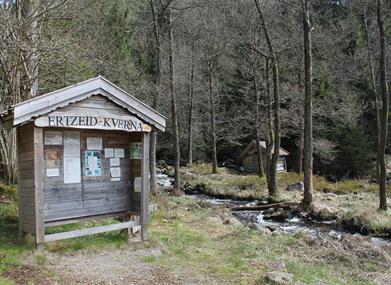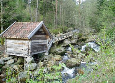 Koselig tursti langs bekk og i li med lauv- og blandingsskog. Flere gamle, restaurerte bygninger. Passer både for barn og voksne!