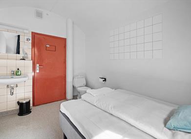 Rommene er nyrenoverte i 2022, og er 9m² store med både toalett, vask, strøm og wifi. Samt et lite skrivebord. Temaet vi har valgt et typ svart-hvitt mønster på celle-rommene. Fengslet har 24 nyrenoverte fengselsceller i den første og i den andre etasjen.
