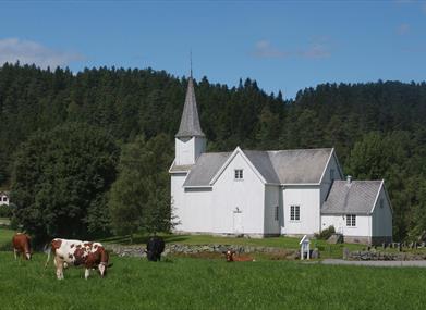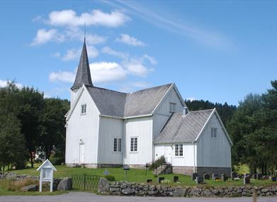 Finsland kirke har en altertavle fra 1750. Åpen etter avtale.