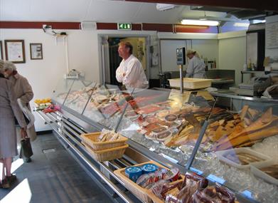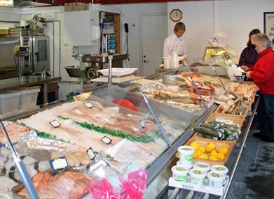 Utsalg av fisk og skalldyr. Her er det alltid ferske produkter, i tillegg produserer Fiskebrygga Sørlandets beste fiskekaker - ifølge trofaste kunder. Velkommen til butikken for en hyggelig fiskehandel!