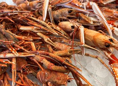 Hos Fiskernes salgslag ytterst på Torskeholmen bugner disken av havets delikatesser, levert dagsferskt i disken fra områdets fiskere. Hver dag legger trålere til kai og sikrer byens borgere gode råvarer.