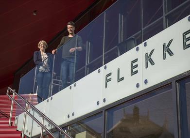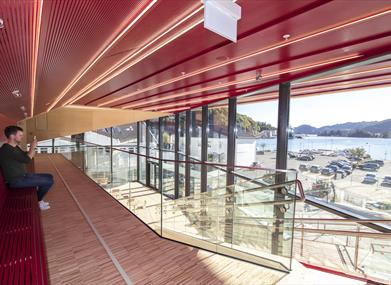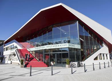 Flekkefjord kultursenter Spira ligger med en fantastisk beliggenhet ut mot Tollbodbrygga og fjorden. Store glassfasader ruver, og skaper en behagelig atmosfære på innsiden.