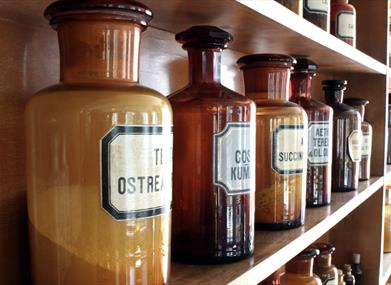 Det gamle Tvedestrand Apotek er bevart som en egen avdeling i museet.
