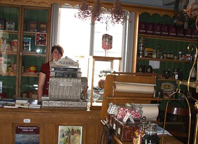 Forvaltergårdens krambod har interiør og gjenstander fra første halvdel av 1900-tallet. Her selger de bl.a. gammeldagse drops og lokalhistorisk litteratur. Dropsene måler de opp slik det ble gjort i gamle dager, og de faller i smak hos både store og små.