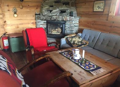 Hytta ligger nydelig til med utsikt mot fjell og elva Litleåna som har mange nydelige badeplasser. Hytta har vedfyrt badstu.