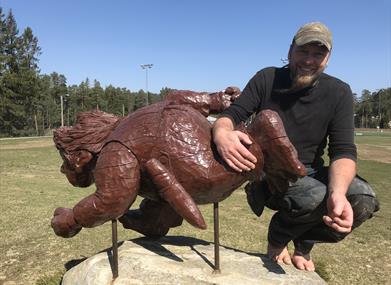 Terje Gordon Jensen, trekunstner som bor på Skreros i Birkenes, har i vår laget noen spennende eventyrfigurer flere steder langs turstiene på Flakkeheia, og det vil komme flere etter hvert. Det er ikke sikkert alle er like lette å få øye på så her må barna bruke øynene godt! Terje lagde for en del år siden en eventyrløype på Justneshalvøya i Kristiansand som er blitt meget populær, og det blir garantert spennende framover å se hva han finner på! Han har også laget Svalandsgubben i tre som pryder Birkenesparken.