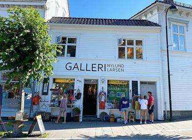 Galleri Nylund Larsen er en spennende myldrebutikk med galleri. I første etasje bugner det av håndplukket interiør- og gaveartikler og capser, mens andre etasje er fylt med kunst og vakre bøker. Her finner du også en liten konfeksjon med et godt utvalg av