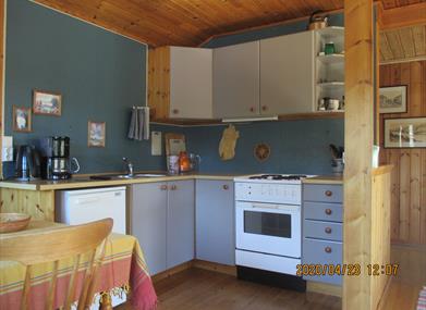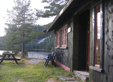 Hyttene er holdt i tradisjonell norsk hyttestil med furupanel og peisvarme. Utomhus enkle utemøbler til hver hytte.