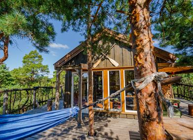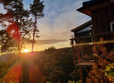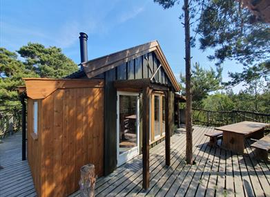 Elgposten: Nyt en stille kveld i tretoppene med hele familien! Her kan en nyte stillheten og bålet til langt på natt med familien eller kjæresten. Hytta er bygget ved et stup og har utsikt over Glubetjønna og ei myr hvor det går et elgtråkk.