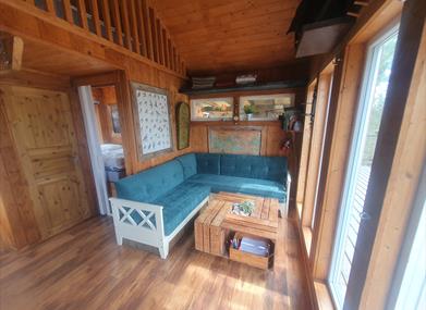 Furunåla : Hytta er utstyrt med et soverom med en behagelig dobbeltseng, en hems med plass til to barn/ungdommer, samt en sovesofa.