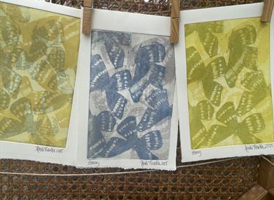 Bli med opp og inn til en vakker hage en utstilling inne og ute. Utstillingen består av lekende fargeetsninger. Formatene er så store og trykkene selges med og uten innramming. Du vil også se og oppleve kort, mosaikkarbeider og arbeider i tre. Velkommen!
