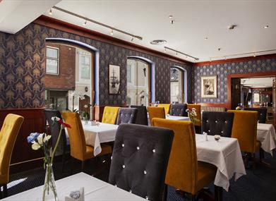 Kombinert konferanse- og selskapslokale tilrettelagt for grupper inntil 60 personer med meget vakkert, innbydende og gjennomført maritimt interiør.