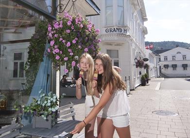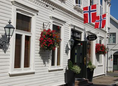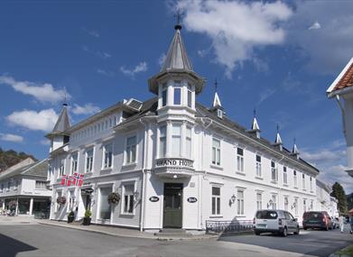 Grand Hotell startet hotelldrift i 1868. Etter flere branner åpnet hotellet som vi kjenner det i 1898. Grand Hotell er idag et moderne hotell midt i trehusbebyggelsen i Hollenderbyen i Flekkefjord.