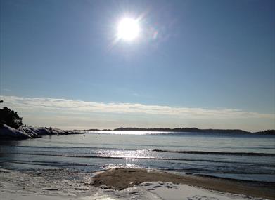 Gå fra parkeringsplassen ned mot lekeplassen i overkant av stranda. Følg stien som går langs gjerdet ut til grusveien. Følg grusveien ca 500 m til du kommer til en tydelig sti som går inn i skogen. Følg denne innover. Koden er plassert langs denne stien. Følg stien gjennom skogen til du kommer nesten ut til sjøen igjen ovenfor en hytte. Følg traktor veien/stien til venstre. Du har skogen på venstre side og havet på høyre. Gå til du kommer til parkeringsplassen på Stangholmen. Stopp gjerne opp litt her og se deg rundt.