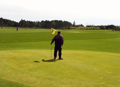 Her kan du spille på en flott men samtidig utfordrende 9-hullsbane. Greenfee-spillere ønskes velkommen.