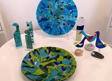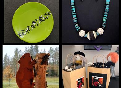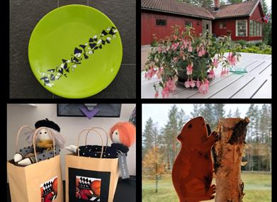 De har et bredt utval gav håndlaga ting i glass, samt foto og maleri av Gunvor Vaule, smykkekunst av Ellen Johannessen og originale strikkedukker fra Dokka laga av Anne Mette Boesen.