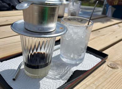 Kafeen tilbyr alt fra kaker og boller, til vårruller og vietnamesisk iskaffe. Felles for de alle er at alt er hjemmelaget og mye produseres i egen hage. Chau og Herbert kan friste med mange rike smaksopplevelser for alle aldre, til en rimelig pris. I tillegg er kafeen lokalisert svært nærme Lindesnes fyr og er definitivt verdt et stopp på veien ut.