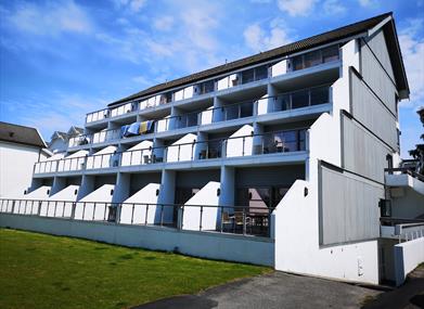 Apartmentshotell i terrassebygg ved stranden