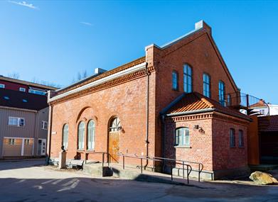Rettslokalene er en del av utstillingen, og flere møbler fra den tid er utstilt.. Hamsuns