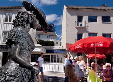 Victoria-statue, Bietorvet, Storgaten 15 – statuen er laget av Nina Sundbye og er inspirert av hovedpersonen i Knut Hamsuns roman ”Victoria” (1898).