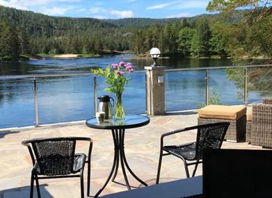 Hamsun Panorama er en lys og innbydende leilighet vegg i vegg med hovedhuset, med en fantastisk beliggenhet rett mot Nidelva. Leiligheten har eget soverom, bad, kjøkken og en romslig stue med spiseplass – alt vendt mot elven gjennom store vindusflater.Dørene kan åpnes helt opp, slik at inne og ute glir sammen og gir følelsen av en liten uterestaurant med utsikt.