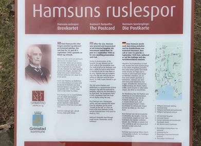 Hamsuns Fotspor 2 : Edens have/Smith-Petersens Have. Ruslesporet følger Frivollveien nordøstover fra sykehuset og fram til Smith Petersen have, som på folkemunne går under navnet Edens Have.